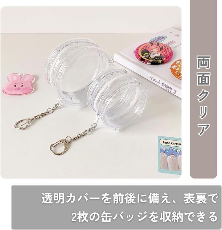 「両面クリア」透明カバーを前後に備え、表裏どちらの缶バッジもそのまま見せられます。