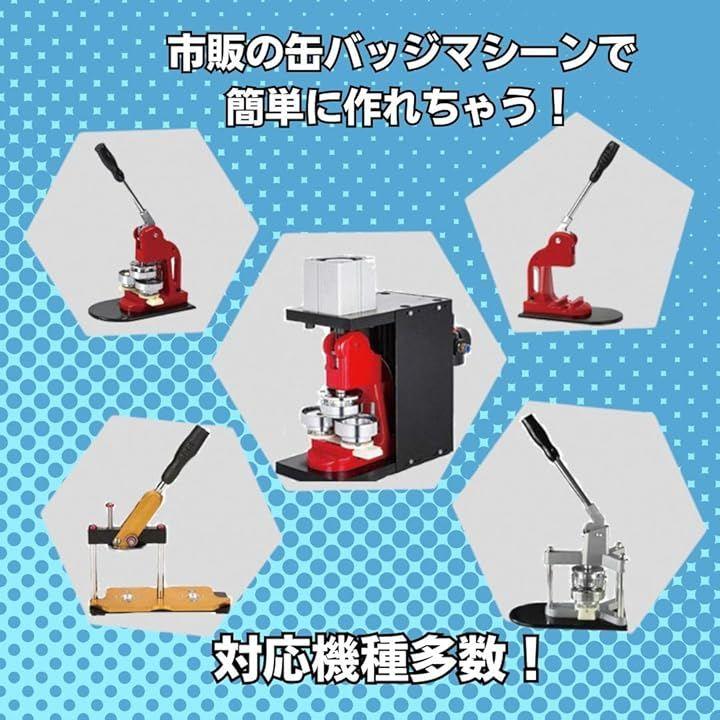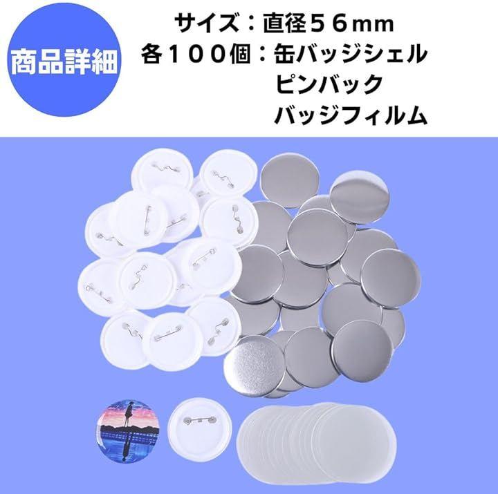 「商品詳細」缶バッチ100個セット、セット内容: 缶バッジシェル・ピンバック・バッジフィルム、サイズ:直径56mm
