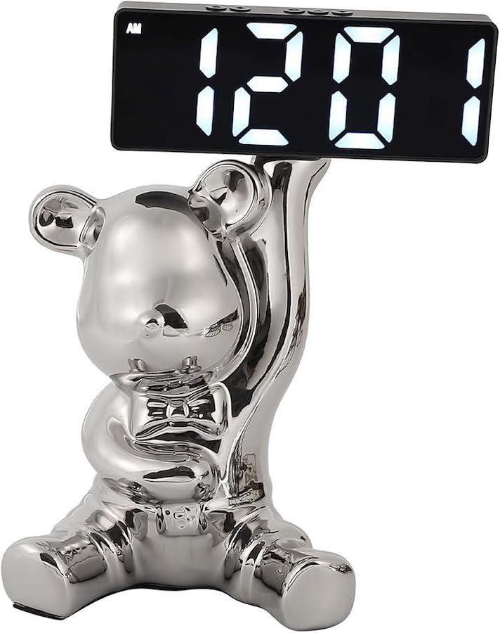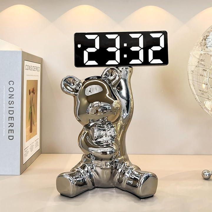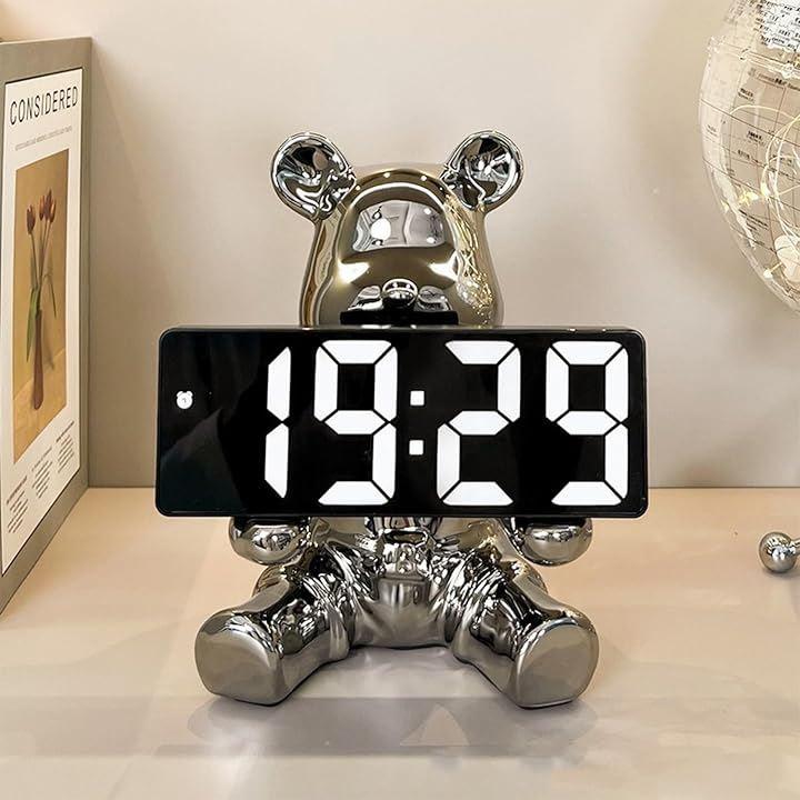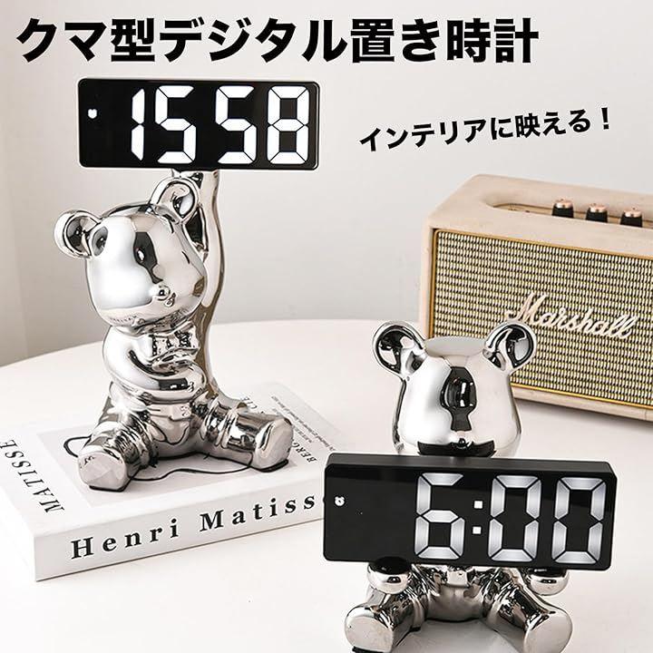 「商品説明」キュートなクマ型のスタンドが印象的なデジタル置き時計。