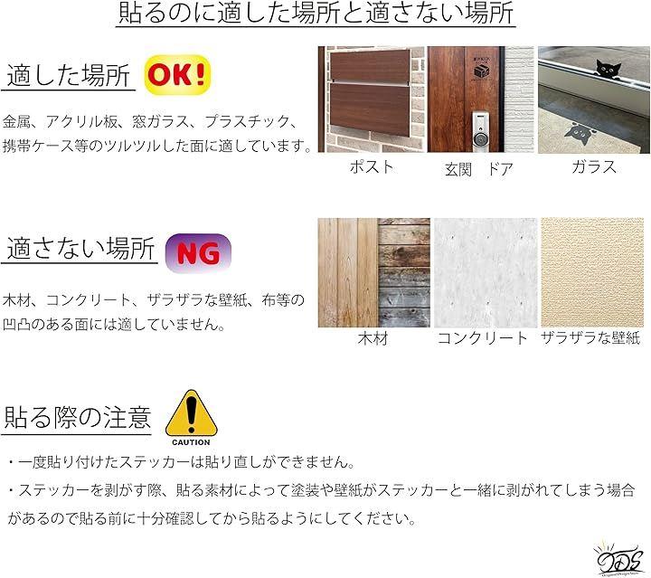 「薄さ」 0.120mm 「耐熱温度」 60℃~80℃ 「使用できる物」 ツルツルした面の 玄関ドア、壁紙、ポスト、バイク、車、船、ボード(サーフボード、スノーボード)、鉄板、アクリル板、窓ガラス、プラスチック、携帯ケース、小物のデコレーション