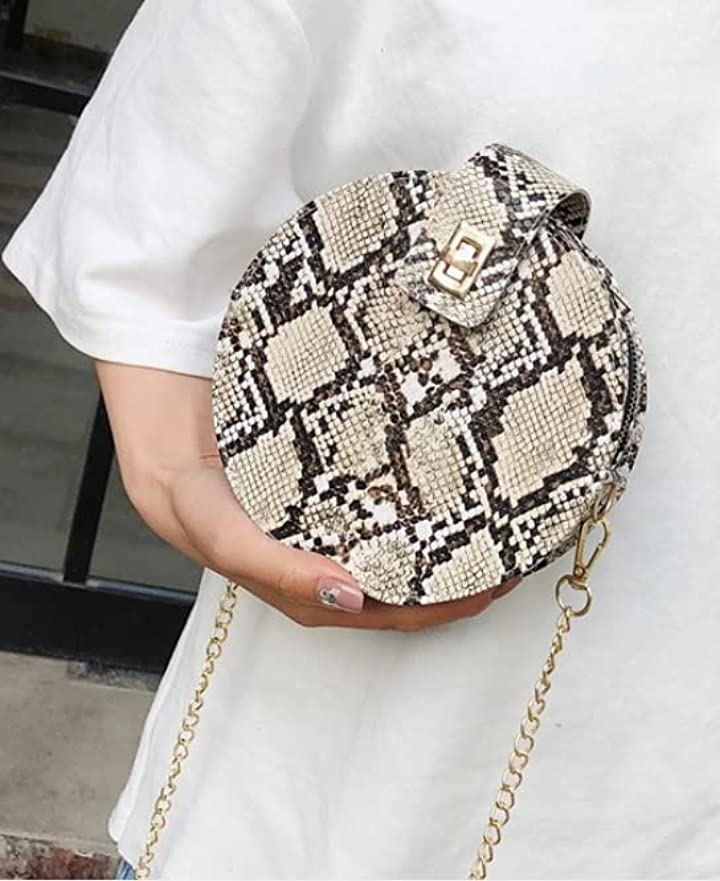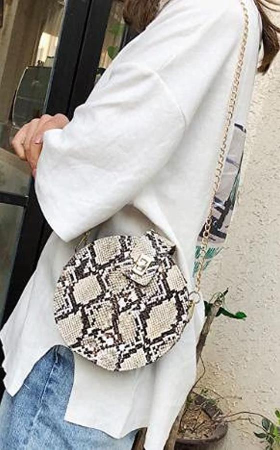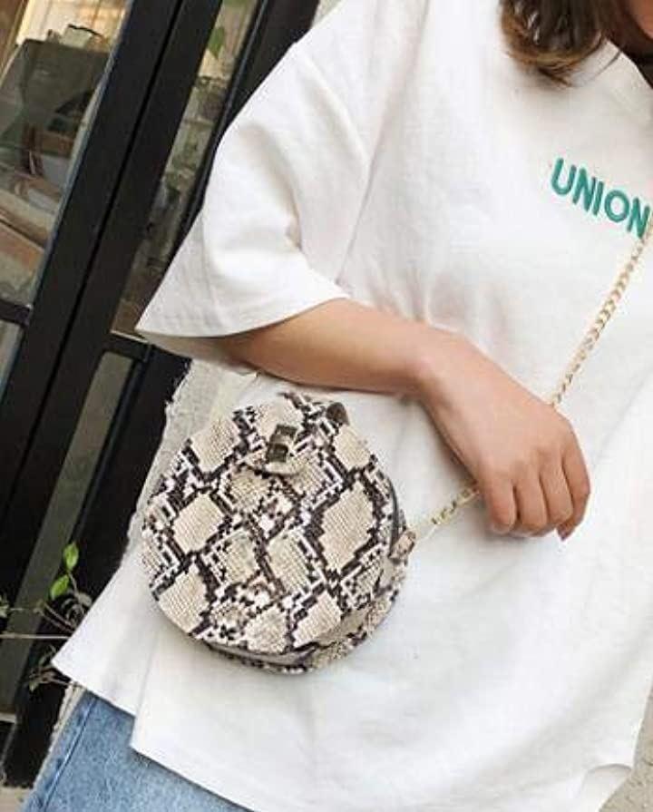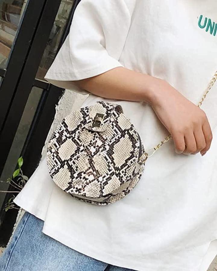・高品質なPUレザー、上質の金具で、ヘビの模様をデザインした、おしゃれなまんまる ななめ掛けチェーンのスマホポシェットです。