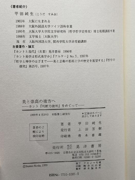 商品名:美と崇高の彼方へ: カント判断力批判をめぐって 晃洋書房 甲田 純生