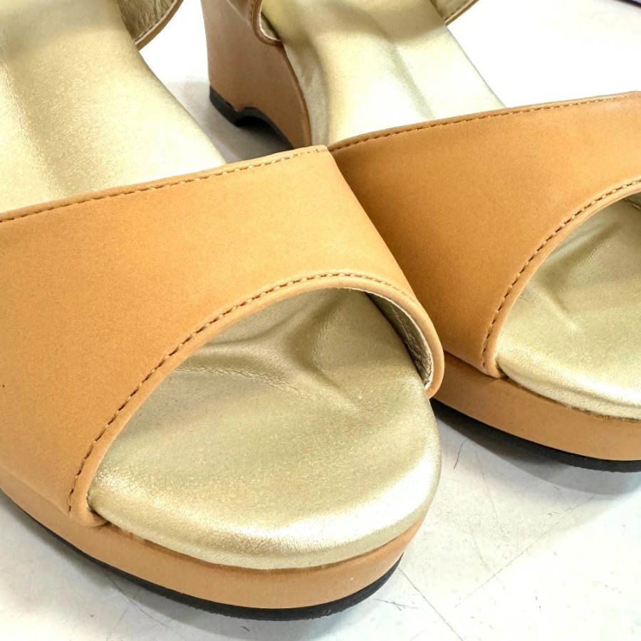 上品なキャメルカラーとゴールドインソールが、足元を華やかに演出。
