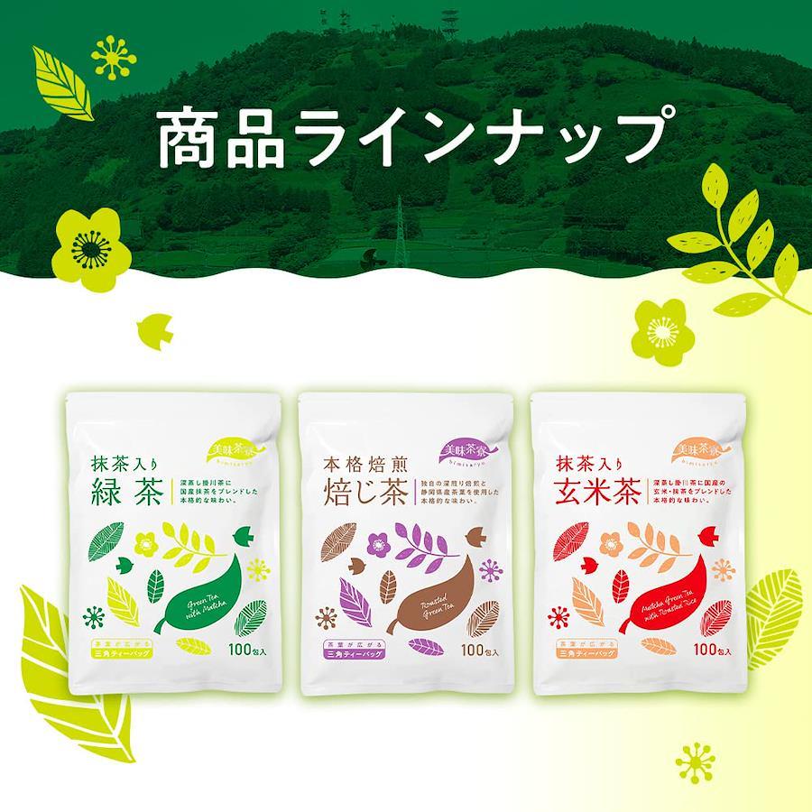 大容量100個入の抹茶入り玄米茶ティーバッグです。抹茶の鮮やかな水色と、深蒸し茶のまろやかな味わい、深煎りの香ばしい玄米茶がお楽しみいただけます。100%国産原料、国内製造です。食品安全マネジメントシステムFSSC22000取得工場で製造。安心してご利用いただけます。ティーバッグタイプですので、簡単便利、茶殻の処理もいりません。水出しでも抽出可能です。300mlあたり1包入れ、3~5時間じっくり抽出してください。ティーバッグは抽出に優れた三角テトラ型。素材は不織布、無漂白で安心です。※糸なしタイプとなります。内容量:250g(2.5gx100個)原材料名:炒り米(国産)、緑茶(静岡県)、抹茶(国産)賞味期限:製造日より1年保存方法:直射日光を避けて、冷暗所で保存して下さい。【免責事項】メーカーによる商品リニューアルに伴いパッケージ(内容量も含む)変更が行われた場合、新パッケージでお届け致します事ご了承願います。