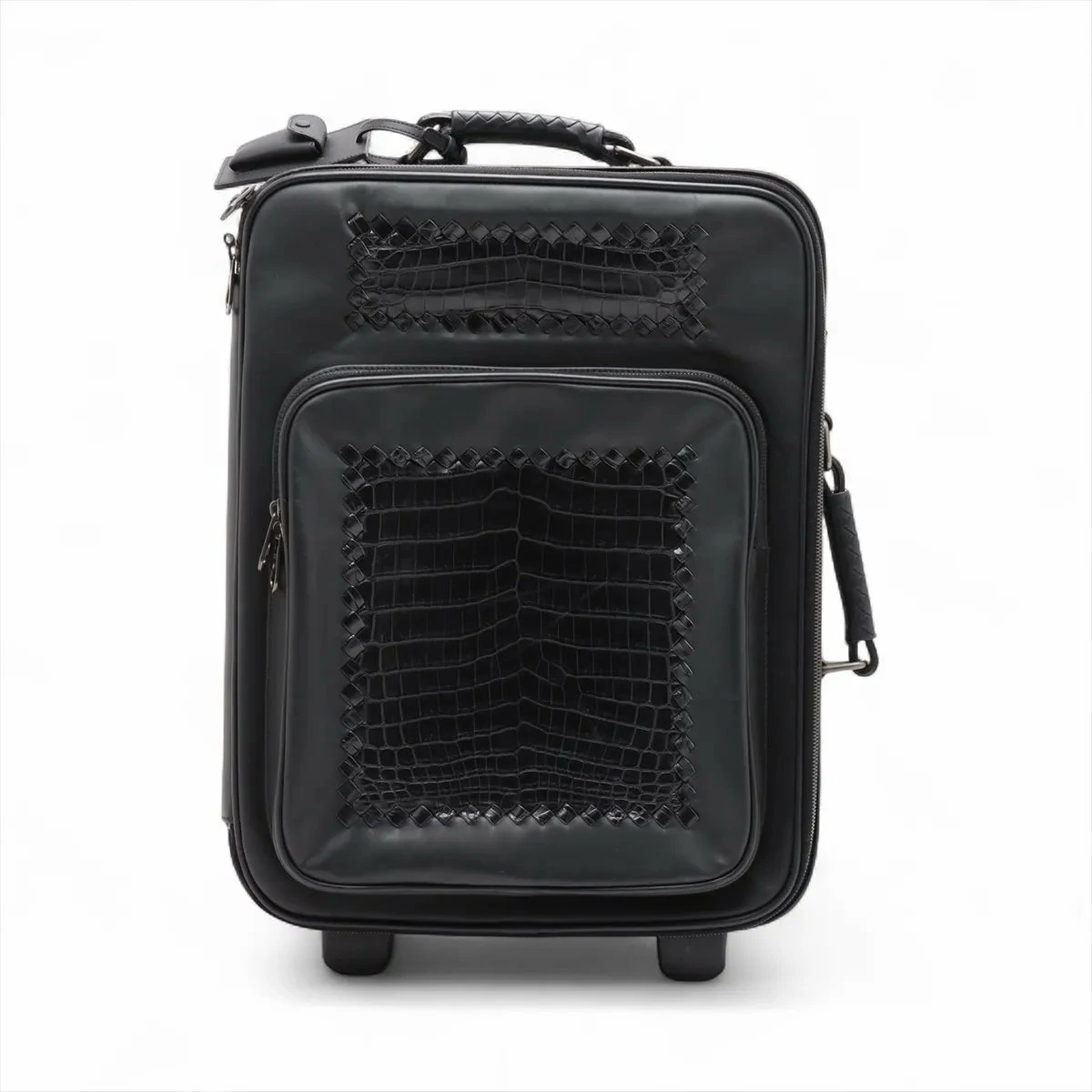 Excellent condition Bottega Veneta Crocodile Intrecciato Leather Suitcase/Carry-on Bag, Black, Men's, MMM DB52-3
