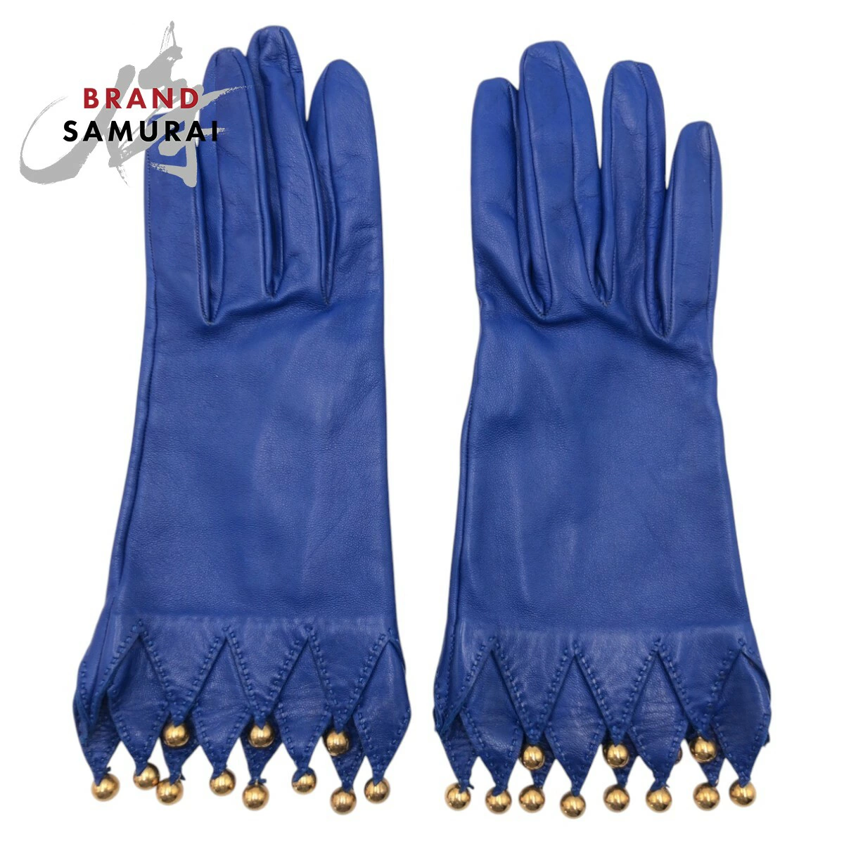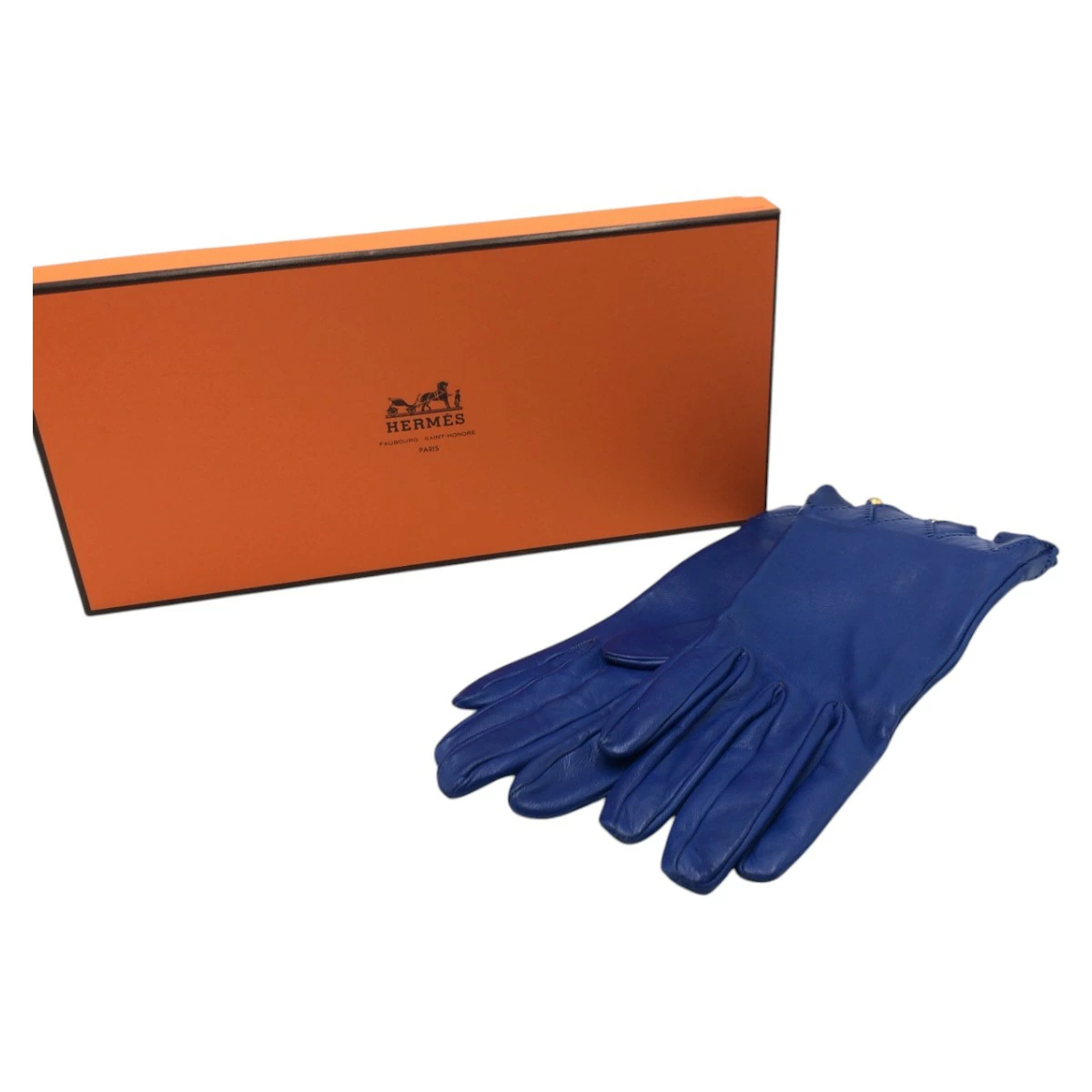 Excellent condition HERMES blue leather gloves for women, 504899 [pre-owned]