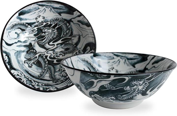 高級感のあるドラゴンデザインのラーメン丼2個セットです。