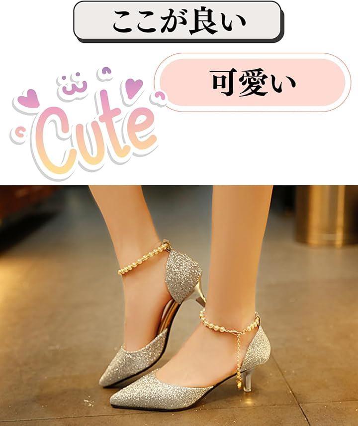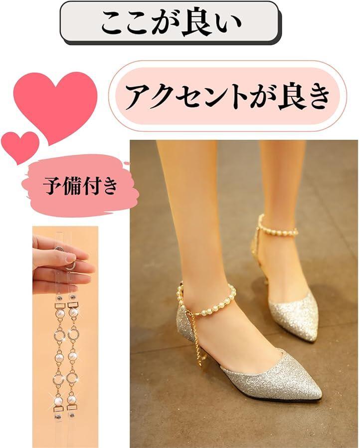 上品で洗練されたデザインで細身のヒールが脚を美しく魅せ、パール付きの装飾が上品な印象を演出。