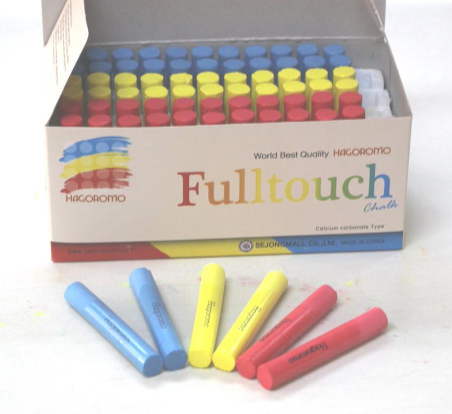 人体に無害で、手に汚れがつきません。 最高級の炭酸カルシウム原料を使用しKC(韓国自律確認)品質認証を獲得しました。 最高級炭酸カルシウムを原料とし、軽いタッチでなめらかな書き味です。 鮮やかな色で可視性に優れ、講義を受ける学生達の集中度が高まります。 粉の飛散が少なく、よく消えます。 細いチョークは折れやすいため、捨てられる部分が多くなります。 しかし弊社の製品は太く、ロングサイズなので、長期的に見ると他社の製品より経済的です。 持ちやすくコーティング加工がしてあるため手を汚しません。 圧縮成型と特殊な高温熱処理を施したため、密度が高く書き減りが少なく、丈夫で折れにくいため経済的です。 スチロールの中仕切りに1本ずつ入っているため、破損が少ないです。 日本ではすでに JIS(Japanese Industrial Standards 日本工業規格)の認証を受けて製作されましたが、韓国内では韓国環境試験研究院から、人体に無害であるというKC(自律安全確認)品質認証を受けました。品質においてはもちろん一番であり安全です。