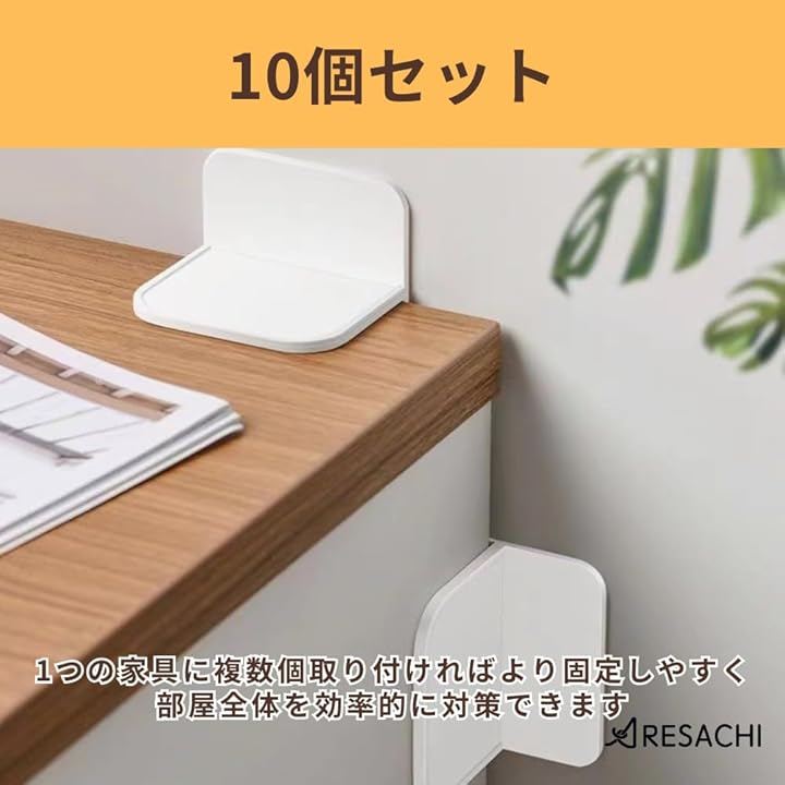 1つの家具に複数個取り付ければより固定しやすく、部屋全体を効率的に対策できます。