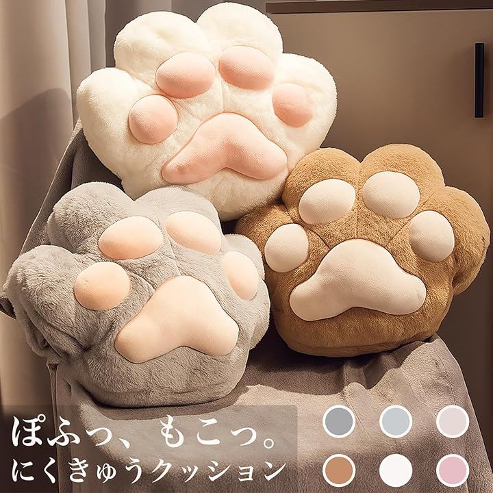 「癒しの肉球クッション」ぷにっとした立体肉球とふわふわマイクロファイバーが、見た目の可愛さと極上の手触りを実現。