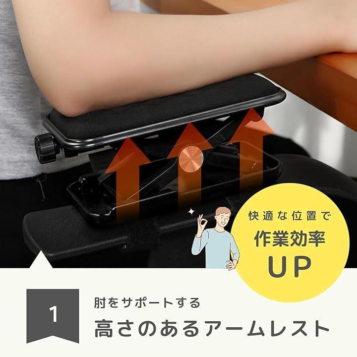 「パソコン仕事に最適なアームレスト」パソコン作業に相性が良く、幅広い太さの椅子に取り付け可能となっております。