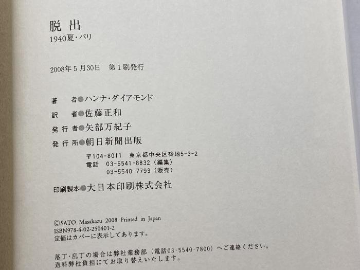 商品名:脱出 1940夏・パリ 朝日新聞出版 ハンナ・ダイアモンド