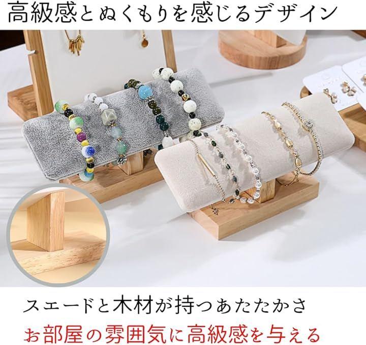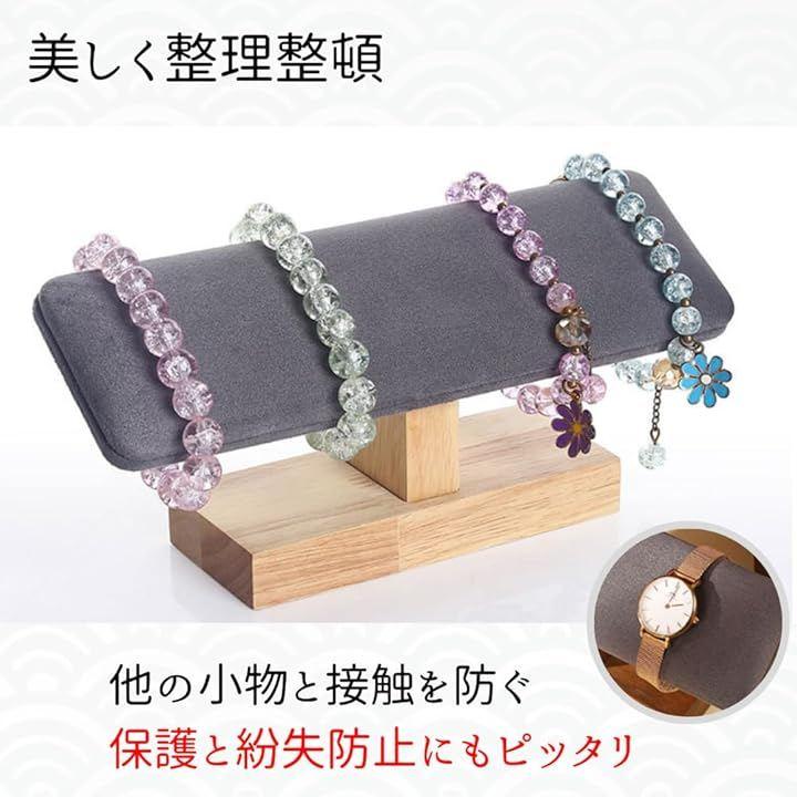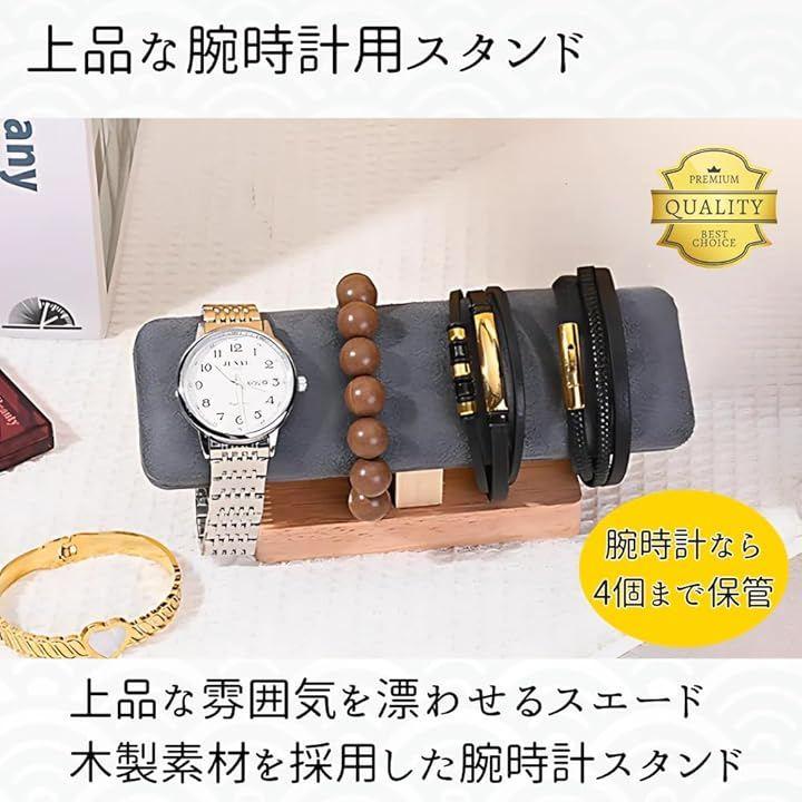 「上品な腕時計用スタンド」上品な雰囲気を漂わせるスエードと木製素材を採用した腕時計スタンド。