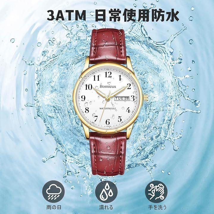 [防水アナログ腕時計]生活防水・汗・雨などの日常の水滴レベルに耐えられる防水性能があり、水泳、温泉、入浴、サウナなどの場合で腕時計を外す必要があります。
