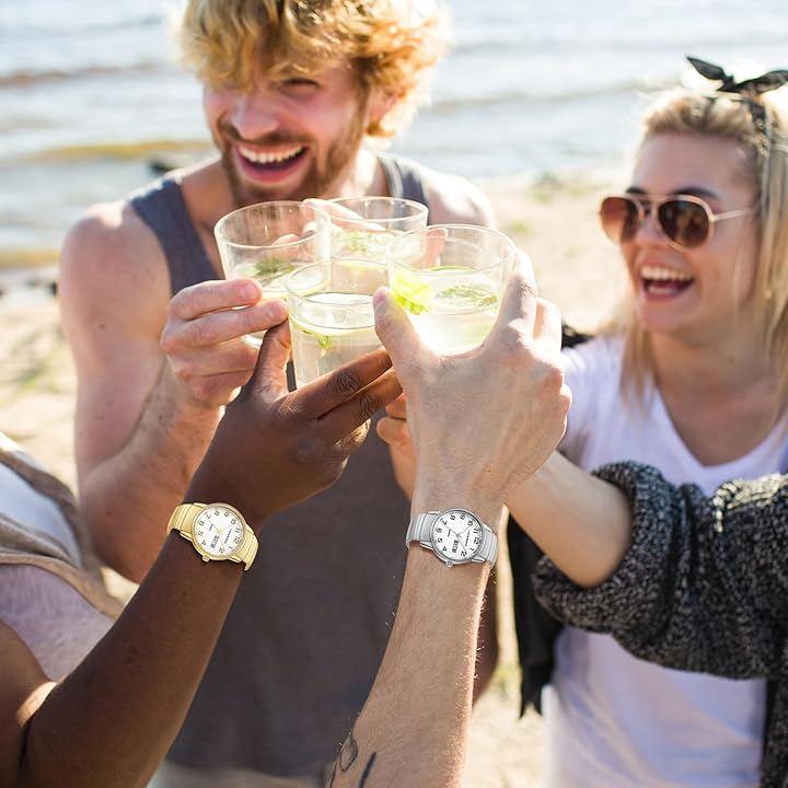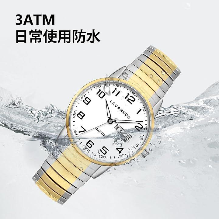 読みやすい文字盤:文字盤は大きくてはっきりした数字と針の特徴で、実用的な日付と曜日で表示されます。