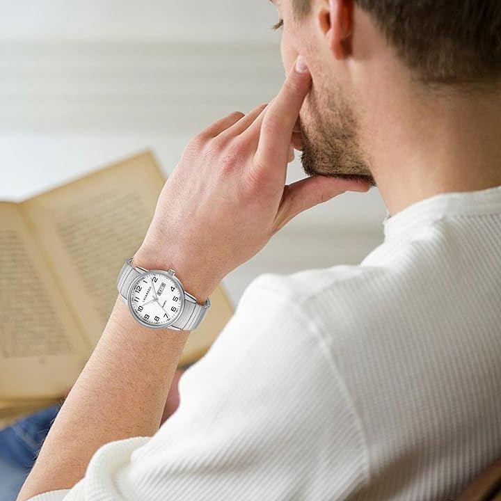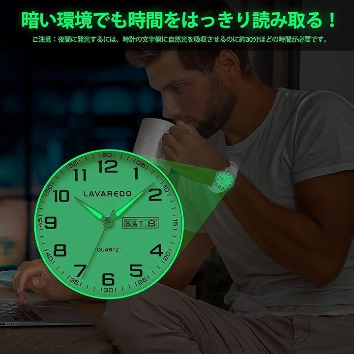 読みやすい文字盤:文字盤は大きくてはっきりした数字と針の特徴で、実用的な日付と曜日で表示されます。