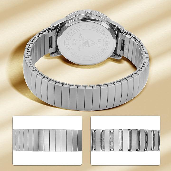 弾性伸縮バンド:男性用腕時計は滑らかに研磨されたステンレス製の拡張ベルトを採用し、ファッションと快適さを融合。