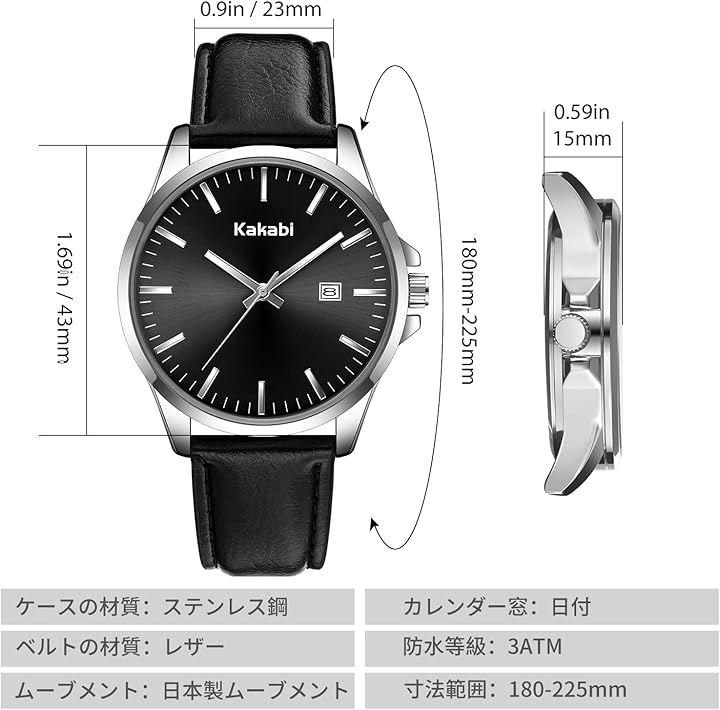 ❖「見やすい 腕時計」:24時間を表す大きな数字とカレンダー窓、三針式時計、簡単に時間を読み取ることができます。