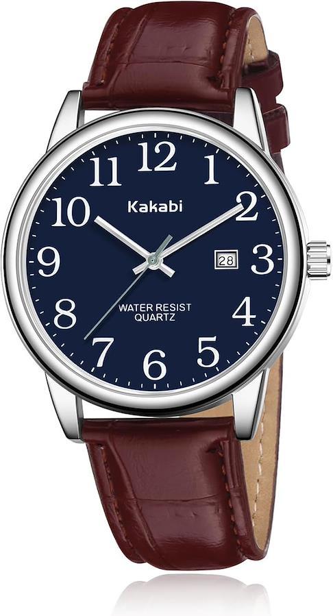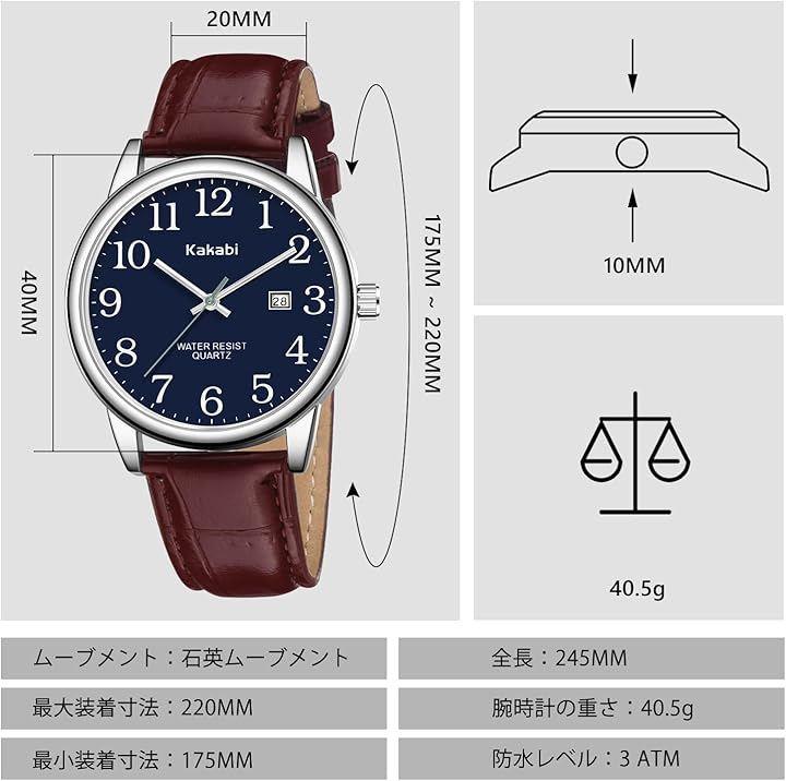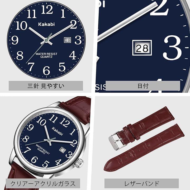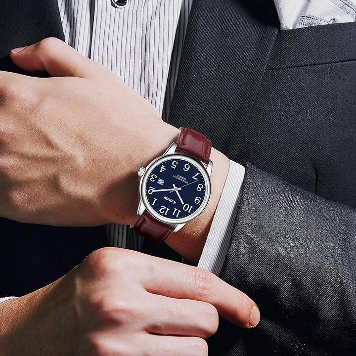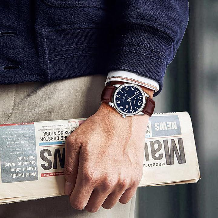 「見やすい 腕時計」:24時間を表す大きな数字とカレンダー窓、三針式時計、簡単に時間を読み取ることができます。