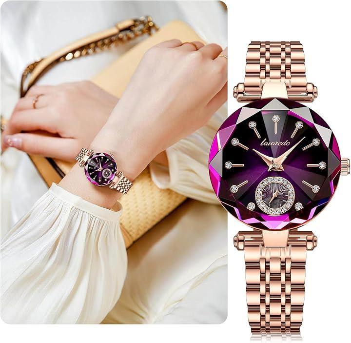 華やかなカットガラス文字盤と快適なベルト、女性に人気の時計です。