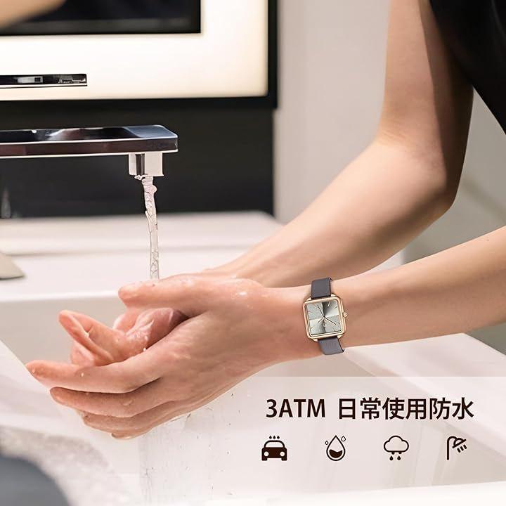 防水腕時計:生活防水・汗・雨などの日常の水滴レベルに耐えられる防水性能があり、水泳、温泉、入浴、サウナなどの場合で腕時計を外す必要があります。