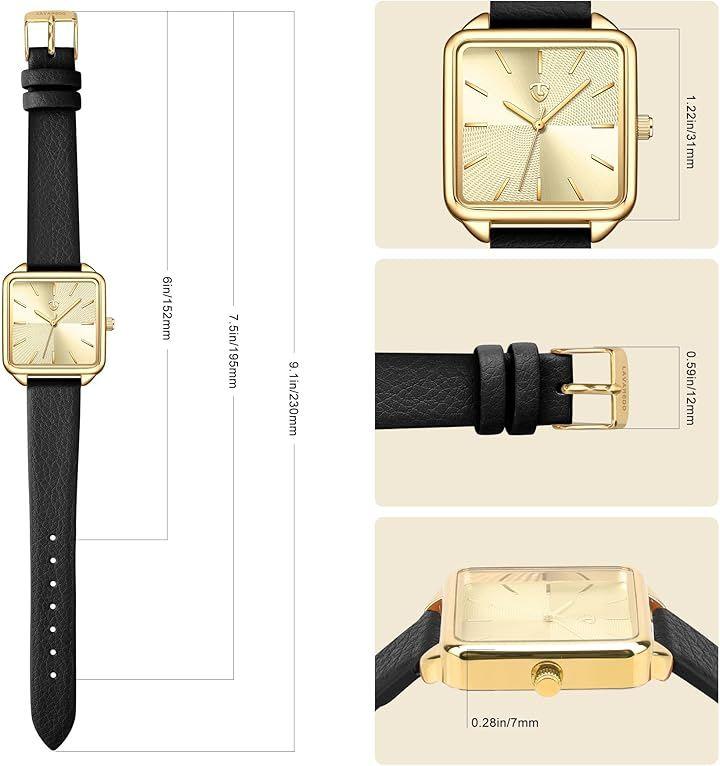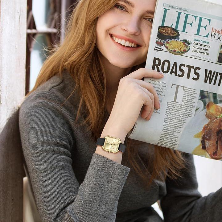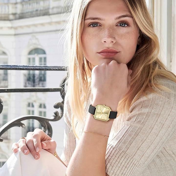 Women's Analog Quartz Wristwatch with Leather Strap, Slim Fit, Stylish, Waterproof, Square Design, Simple Design, Popular for Casual Fashion, Business, Work, Commuting, Birthday Gift for Girlfriend, Daughter, Wife, Mother
