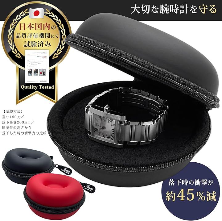 「優れた耐衝撃性で腕時計を守る」 クッション性の高い素材が衝撃を吸収し、落下時の衝撃を約45%低減。