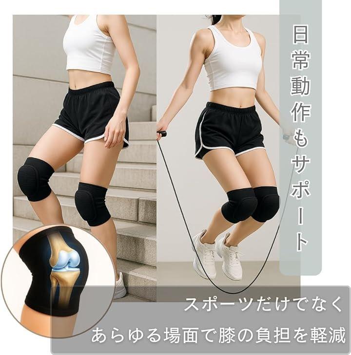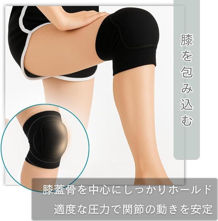 膝にぴったりフィットし、運動中もズレにくい設計となっています。