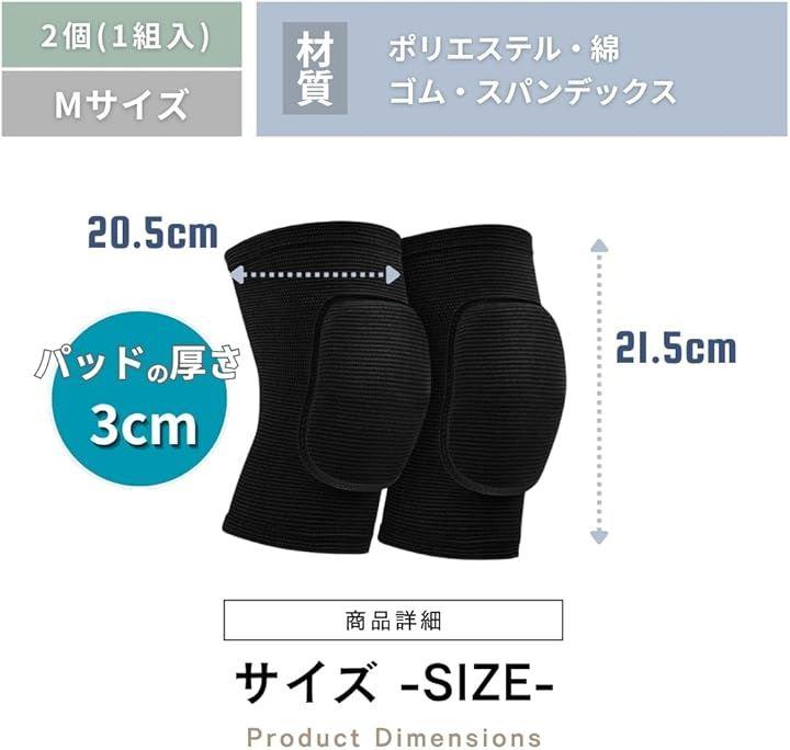 「商品内容」膝サポーター:2個(1組) サイズ:長さ20.5cm、幅21.5cm、厚み3 cm(標準体型向け) 材質:ポリエステル、綿、ゴム、スパンデックス *サイズ詳細は商品画像をご確認ください。