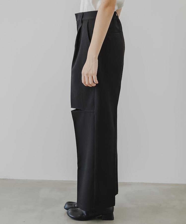 セットアップ着用も可能な膝スリットスラックスパンツ