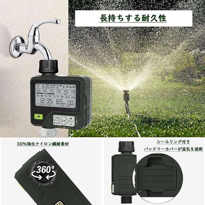 「防水・耐久構造」:IPX5等級の防水性、このガーデンホースは新しい空気圧密閉部品を使用し、トップコネクタは高耐久性と固体材料で作られており、水タイマーは普通のプラスチックよりも耐衝撃性と耐摩耗性に優れています。