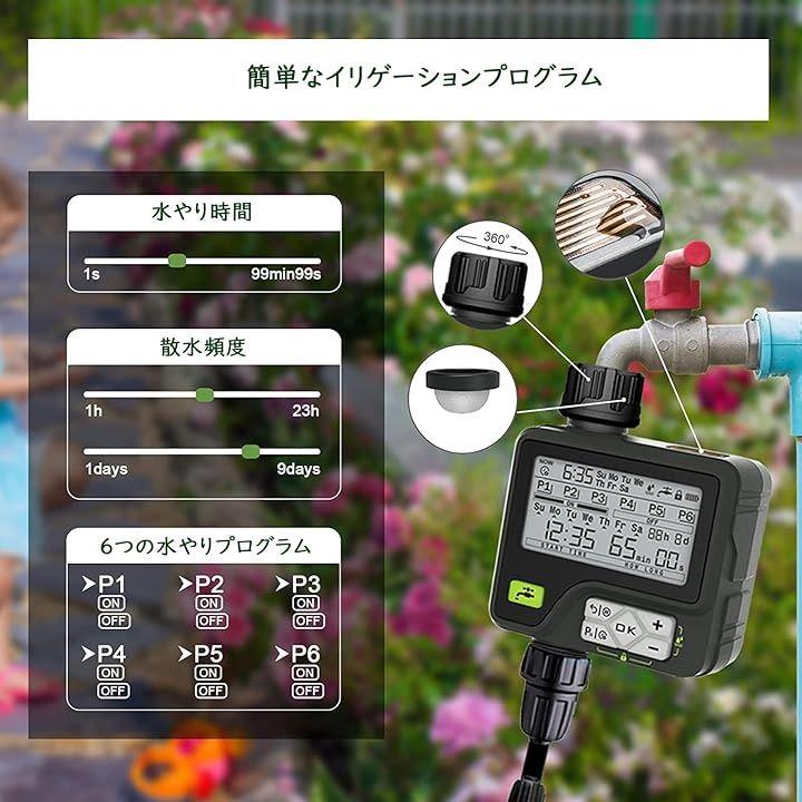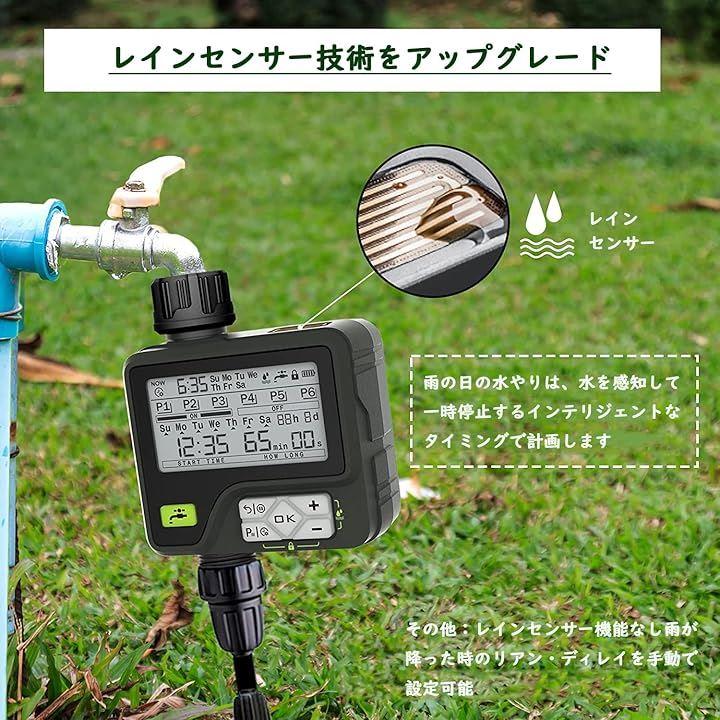 「インテリジェントレインオートセンサーバージョン」:内蔵のレインセンサーチップは自動的に雨水を感知し、高感度でリアルタイムの雨量を監視し、バルブに割り込むことによって、プログラムされた散水スケジュールを一時停止するために応答し、水の節約と雨の日の過湿を防ぐのに役立つことができます。