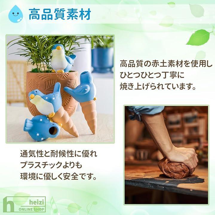 テラコッタ素材でできている給水器は、通気性と耐候性に優れ、プラスチックよりも環境に優しく安全です。