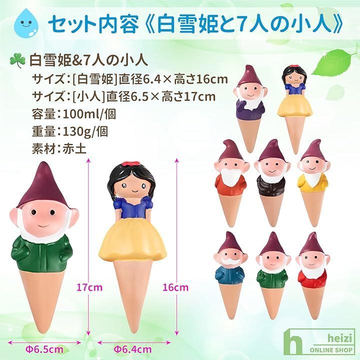 Automatic watering device for plants, travel, away from home, automatic watering device, potted plants, flower pots, watering, ceramic, Snow White & Dwarfs, total of 7 pieces