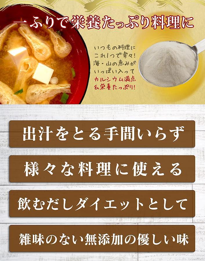 偏りがちな食生活を健康的に♪ お湯に溶かして「出し」としても、ふりかけて「調味料」としても使える万能出汁。
