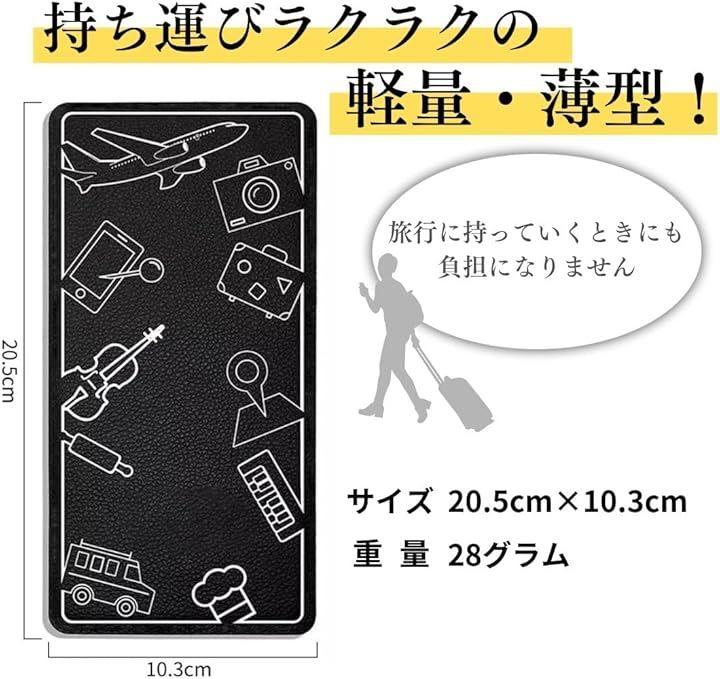 「サイズ・重量」 縦20.5cmx横10.5cm、重さ28gの薄型・軽量デザインで、バッグやスーツケースにも収納しやすく持ち運びに便利です。