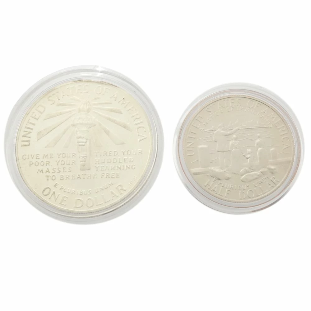 | 商品説明 | | 取扱店舗 | ミドリヤ本店 | | 状態 | 中古Sランク | | 素材 | 銀 | | 色 | シルバー | | 重量 | 小:11.3 大:26.73 | | 額面 | 1ドルx1枚50セントx1枚 | | 付属品 | 内箱、外箱 | | 備考 | 未使用でとてもきれいなお品ですが、展示品のため微細な展示傷はご容赦ください。 ※未使用品ですが、経年による小傷、汚れ、焼けが少々ございます。 [全体コンディション]きれいです