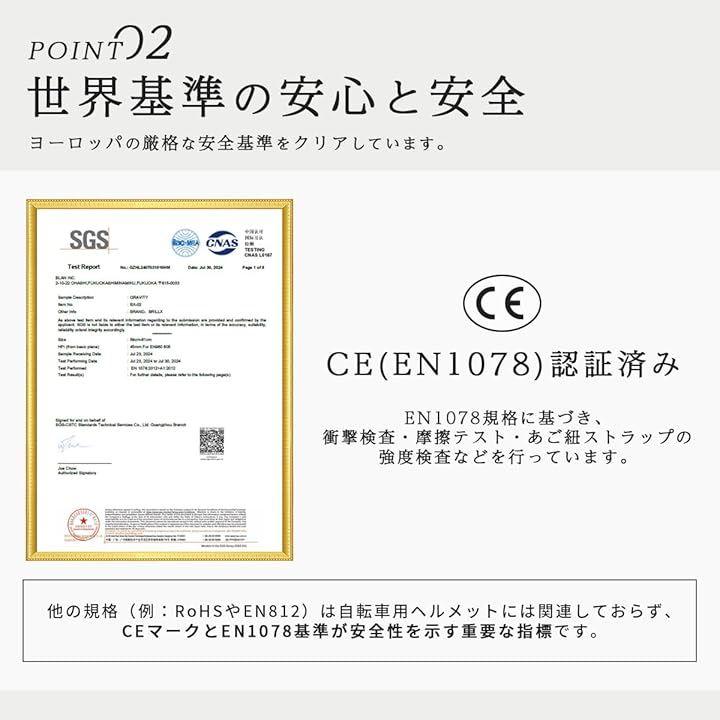 「世界基準の安心と安全」CE(EN1078)認証取得。