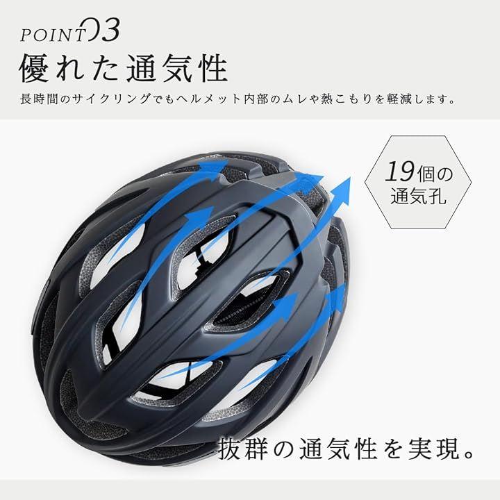 「優れた通気性」19個の通気孔を備えており、ヘルメット内部のムレや熱こもりを防ぎます。