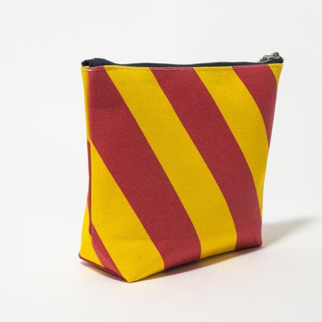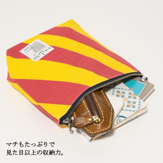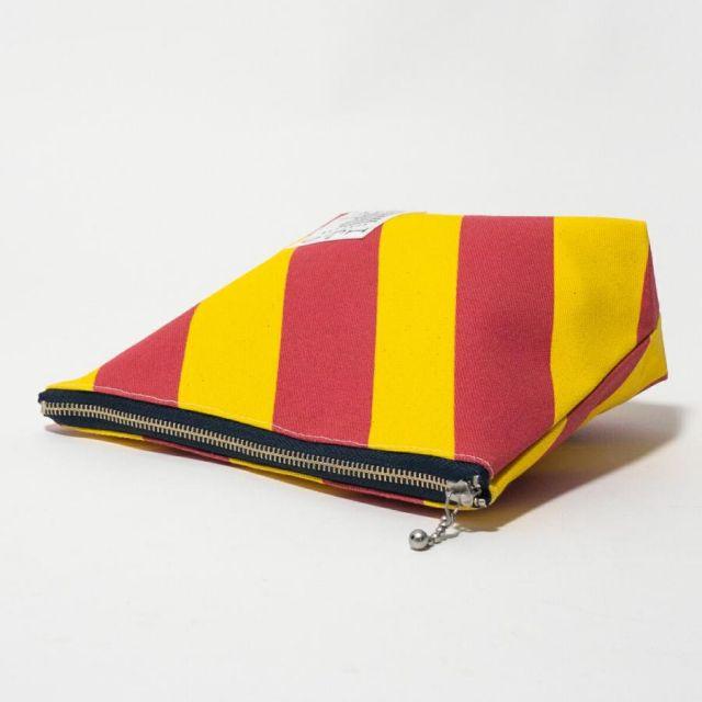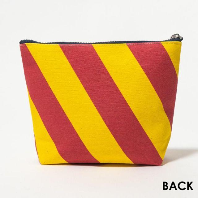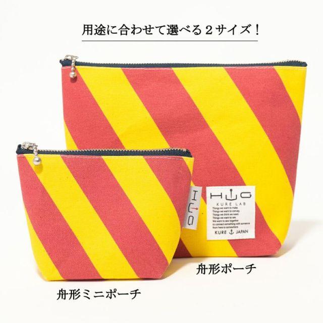 商品名:舟形ポーチ 【 旗ことば 「 Y旗 」】[ HUG KURE LAB. -接ぐクレラボ-] 日本製 海上自衛隊 国際信号旗 富士金梅 呉市 土産国際信号旗の「Y旗」をモチーフにした舟形ポーチ。生地は、純国産の綿帆布「富士金梅」を使用。丈夫な生地を使い、丁寧にしっかりとした縫製で職人が一つずつ仕上げるので、長年愛用していただけるポーチに仕上がりました。使い込むうちに生地が柔らかくなじみ、味わいが出て愛着が深まります。普段使いの小物入れやトラベルポーチなど、 さまざまなシーンに対応できるポーチです。■■■■■【旗ことば-HATAKOTOBA-】とは■■■■■花に花言葉があるように、国際号旗にも1つ1つまたは組み合わせによってメッセージが込められ、世界共通で使用されております。「HUG 旗ことばシリーズ」では、見ているだけでハッピーになれるカラフルな国際信号旗に遊び心を加えたプロダクトを提供します。■■■■■■■■■■■■■■■■■■■■■■■■■●大きさ:縦15cm×横(上)20.5cm(下)14.5cm×マチ6.5cm●素材: 日本製帆布ブランドの雄「富士金梅」●Made in JAPAN(日本製)