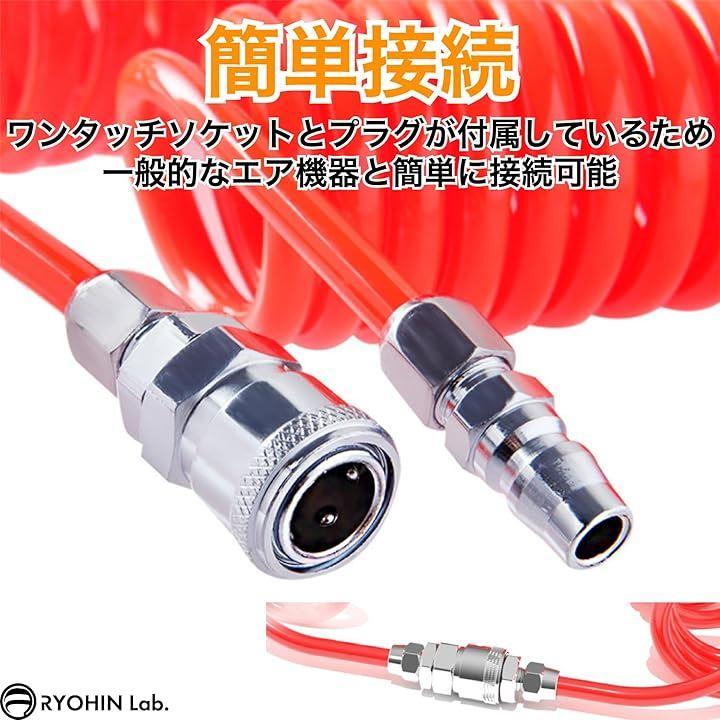 「簡単接続」ホースの両端にワンタッチソケットとプラグが付属しているため、一般的なエア機器と簡単に接続することが可能です。
