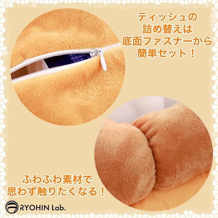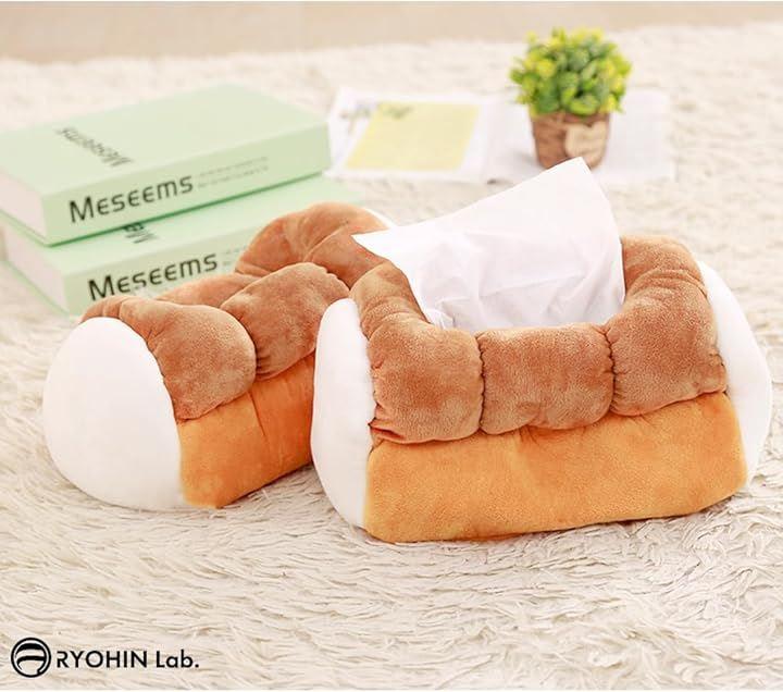 「特徴」フワフワした手触りがたまらない何度も触りたくなる、おいしそうなパン型のティッシュカバーです。