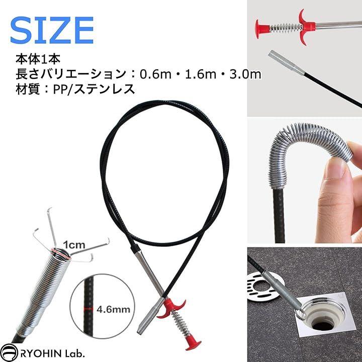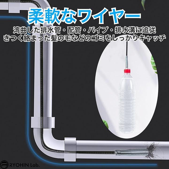 「柔軟なワイヤー」湾曲した排水管・配管・パイプ・排水溝に追従して、きつく絡まった髪の毛などのゴミをしっかりつかんで引張ることで詰まりを解消可能です。