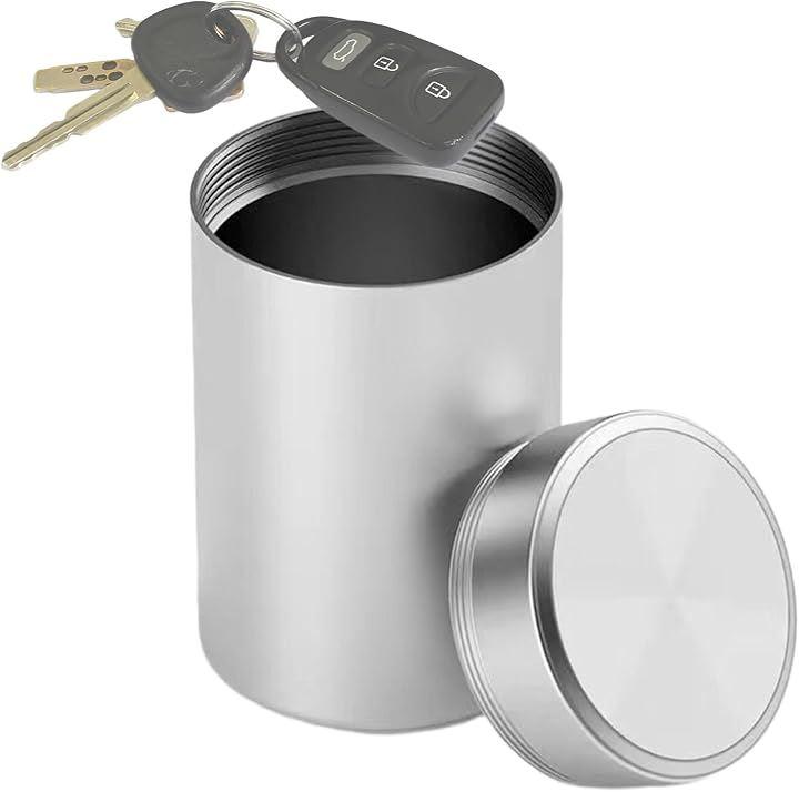「強力な電波遮断性能でスマートキーを守る」アルミニウム合金とネジ構造による小型収納缶で、外部からの電波の侵入をしっかりブロック。