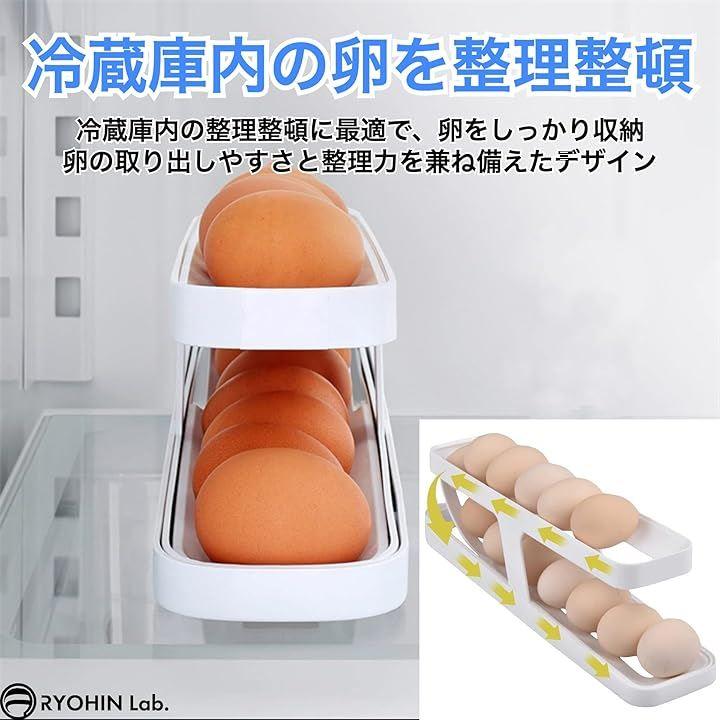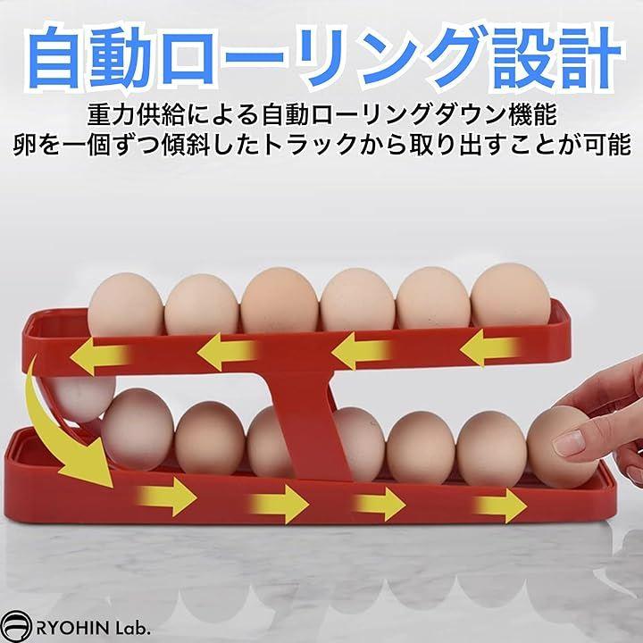 「スペース効率の向上」この卵ケースは、冷蔵庫内のスペースを効率的に利用できるよう設計されています。