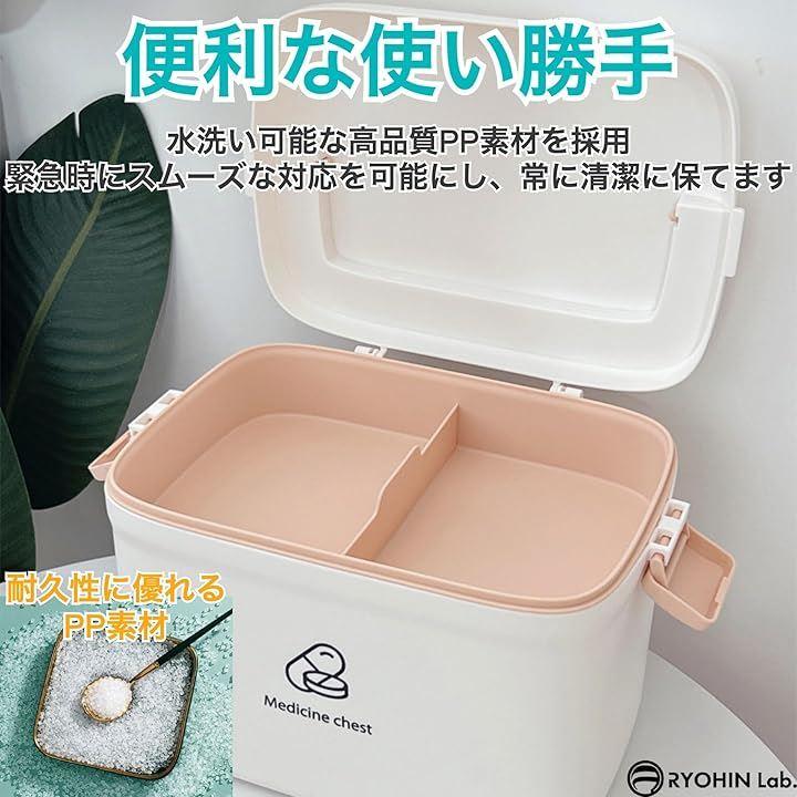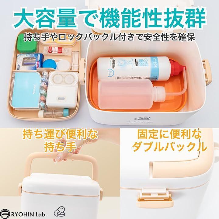「整理整頓を促進する2段構造」トレイ付きの2段式構造で、薬品や医療用品を用途や頻度に応じて分けて収納可能。
