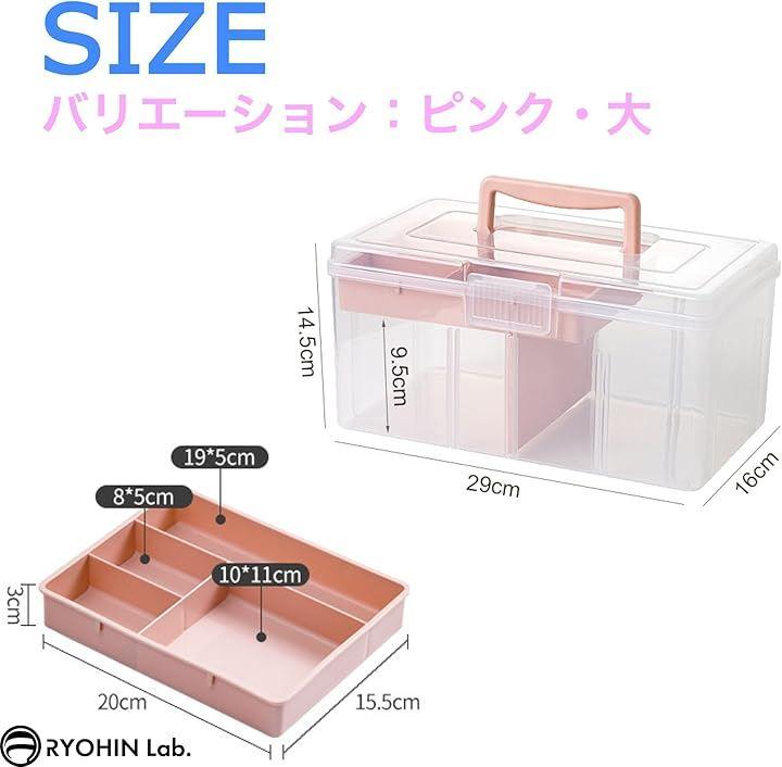 「多様な用途に対応」大容量・透明なデザインで、救急箱以外にも裁縫具、メイク用具、釣り道具、文房具など、様々な用途に利用可能。
