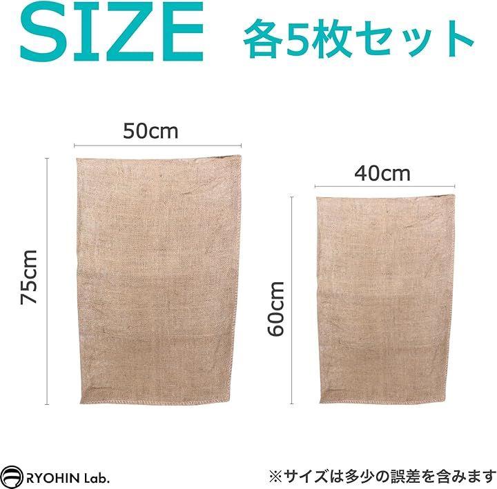 「商品内容」5枚セット、サイズバリエーション:約40x60cm・約50x75cm、素材:麻 *特有の匂いや細かい繊維かすが落ちる場合があります。