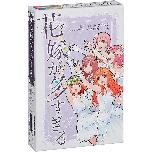 アークライト 花嫁が多すぎる (3-5人用 30分 8才以上向け) ボードゲーム 大人気コミック『五等分の花嫁』(著:春場ねぎ/講談社)が、作者の希望もありカードゲームになりました。原作ファンもゲームファンも誰もが楽しめるカードゲーム。パッケージイラストは原作者による豪華描きおろし。・ゲームシステムは『シンデレラが多すぎる』をベースに、より遊びやすく、繰り返し遊びたくなる仕様にリメイク。・条件を絞り込んでいく基本ルールはそのままに、条件を「髪型」と「服装」に限定。カギを握るのは「花嫁度」。・1ラウンドは5分足らず。サクサクのプレイ感で、全員が親をプレイするとゲーム終了。高得点で勝利を目指せ。プレイ人数:3~5人プレイ時間:30分対象年齢:8歳以上原作・イラスト:春場ねぎゲームデザイン:大気圏内ゲームズグラフィックデザイン:嶋田美咲(株式会社アークライト)ロゴデザイン:高木紗耶・長谷川文香(株式会社RedRooster)(C)春場ねぎ/講談社 (C)2020 Arclight,Inc.[セット内容]五つ子カード(88×63mm):25枚花嫁タイル:5枚スタートプレイヤーマーカー:1枚得点チップ:42枚遊び方説明書:1冊
